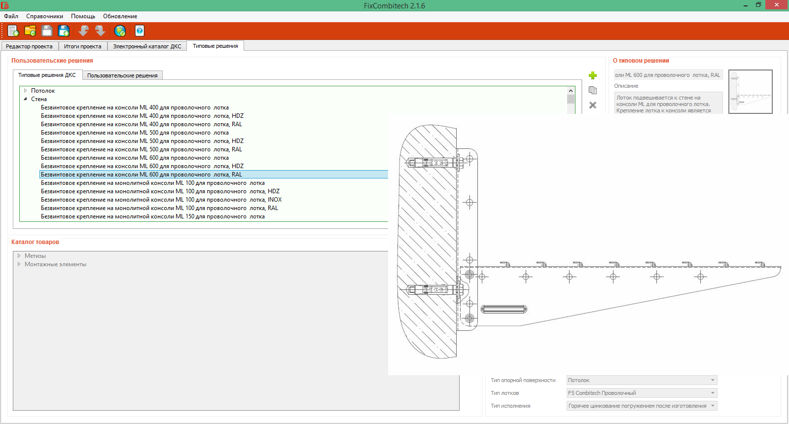 Версия программы FIX Combitech 2.1.5 предназначена для расчета аксессуаров и крепежа металлических лотков. В данной версии вы сможете осуществить подсчеты аксессуаров и крепежа для полного ассортимента металлических лотков, производимых компанией ДКС:
