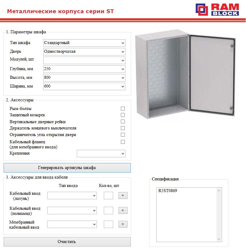 Конфигуратор корпусов ST предназначен для быстрого и удобного подбора навесных шкафов серии ST и аксессуаров.