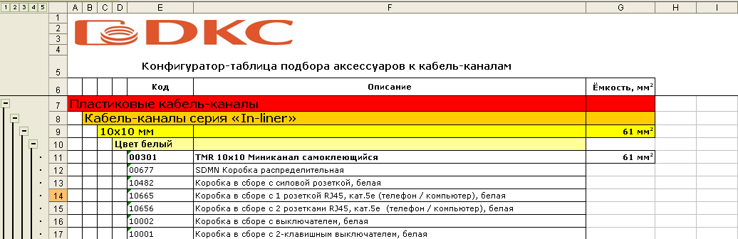 Конфигуратор подбора аксессуаров для коробов и миниканалов ДКС серий "In-liner, -Front, -Aero"